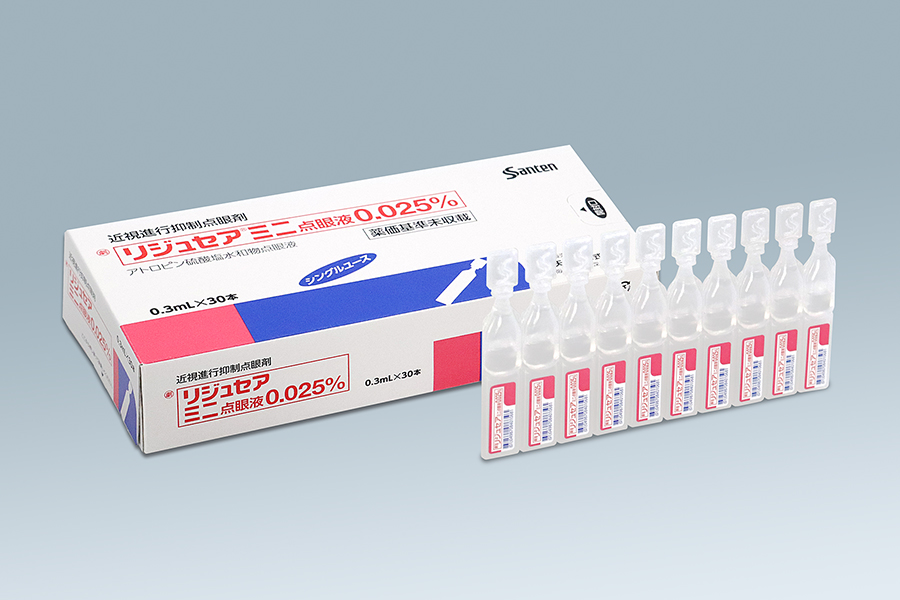 当院では参天製薬「リジュセアミニ点眼薬0.025%」を1日1回就寝前に点眼することで、近視の進行を抑制する治療を行っております。